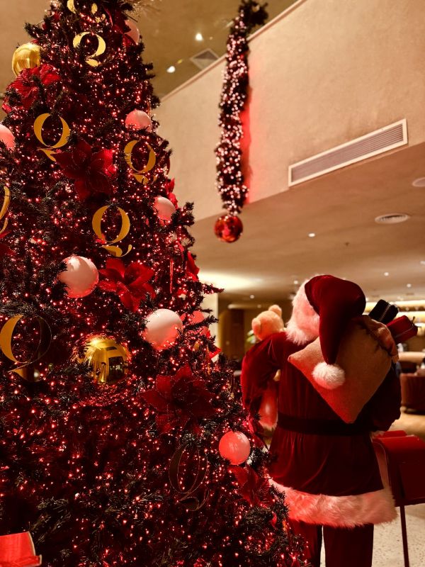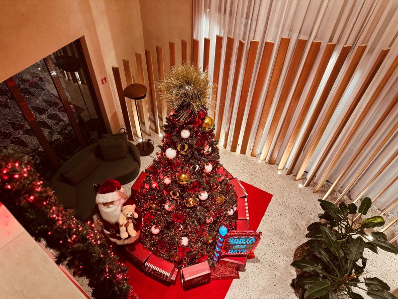A busca por um Natal afetivo permanece, mas ganha novas leituras. Figueiredo aposta em composições que resgatam símbolos tradicionais, como vermelho, verde e dourado, apresentados de forma atual, com volume, brilho e profundidade. “Queríamos trazer o Natal clássico, mas de forma atual e interativa. O vermelho domina, com toques de verde, dourado e um leve branco, tudo pensado para iluminar e convidar à convivência. É tradição repaginada para entrar no olhar de quem passa pelo hotel”, afirma o designer.